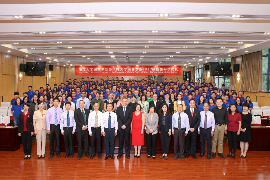 (2017年5月18日,新西兰UW学院成立仪式举行,新西兰高等教育、技能与就业部长Hon Paul Goldsmith与浙江大学校长吴朝晖共同为学院成立揭牌。)