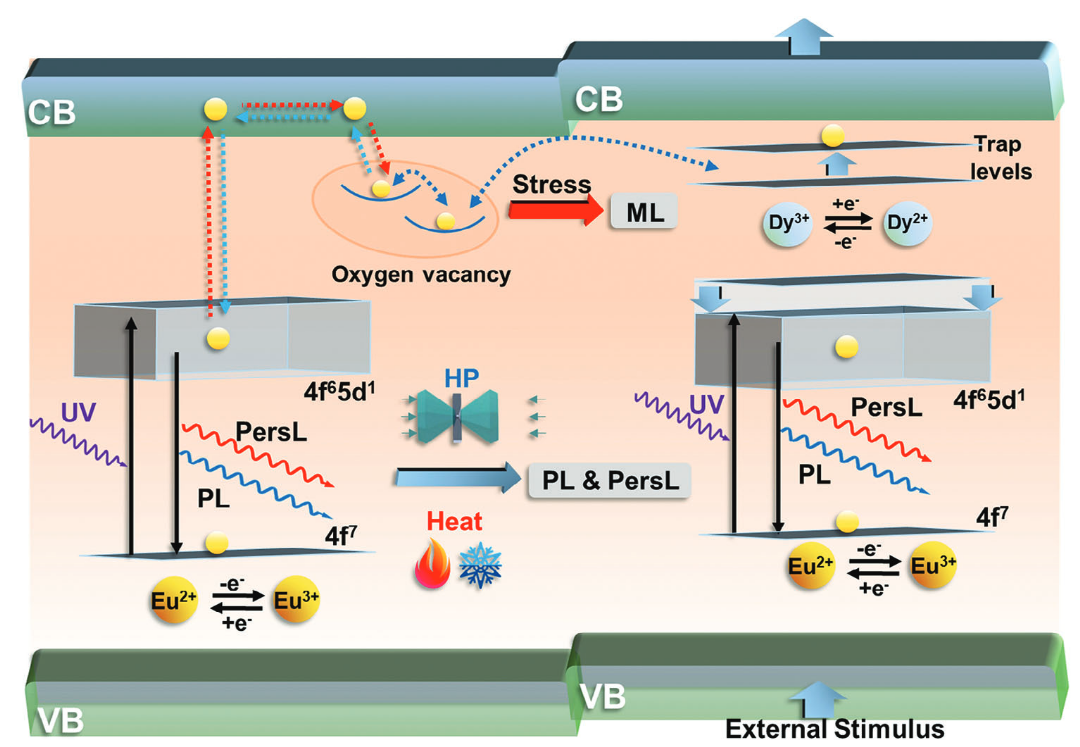 近日,信电学院郑腾、彭亮团队在材料学TOP期刊《Advanced Science》 (中科院1区,IF=14.3)发表突破性研究,通过创新设计Sr₂MgSi₂O₇:Eu²⁺/Dy³⁺(SMSO)发光材料,成功构建了全球首个集光致发光、应力发光与长余辉发光三重响应特性于一体的智能传感平台。