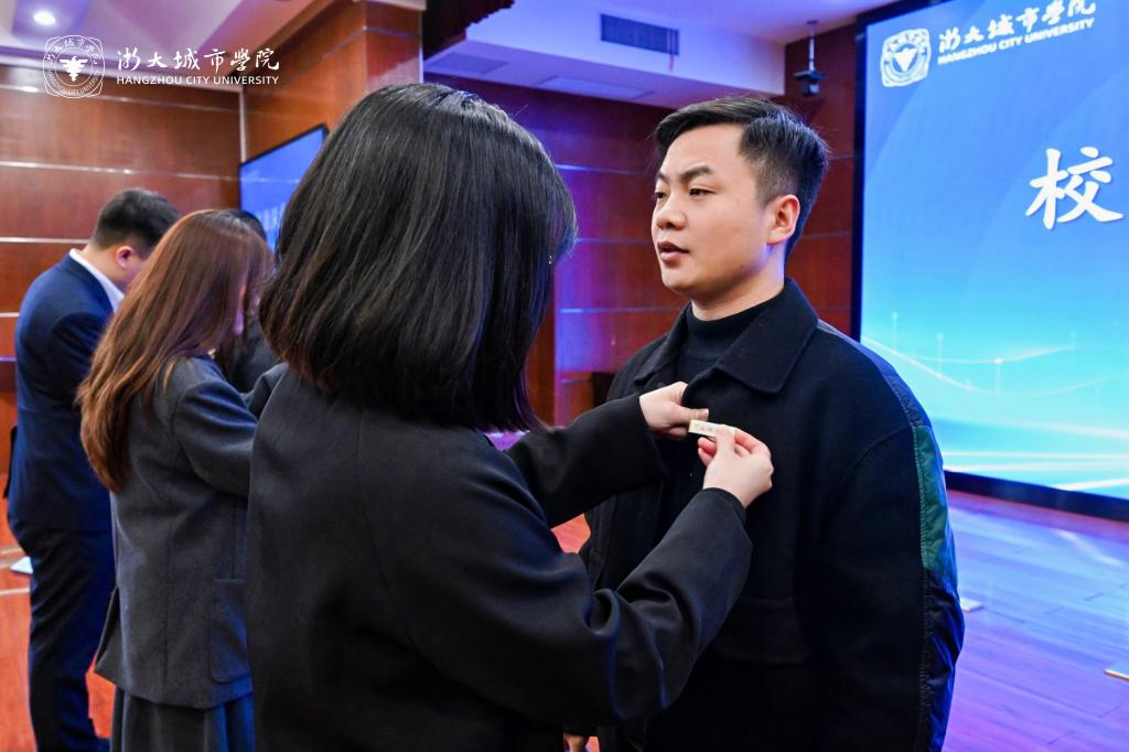 典礼上还举行了校徽佩戴仪式,班主任为学生代表佩戴校徽。