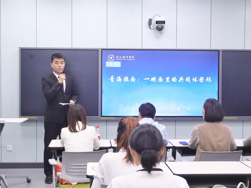 比赛现场,经各学院遴选推荐的6位选手,紧扣《中华民族共同体概论》核心内容,以饱满的热情和真挚的语言,从不同角度诠释着 “民族团结一家亲” 的深刻内涵。选手们或跨越千年历史,讲述了茶马古道上各民族交往交流交融的好故事;或以父辈及自己成长经历,抒发了忠诚爱党、心向祖国的赤子情怀;或以青海拉面为例,揭示了中华民族共同体“密码”;或聚焦锡伯族戍边事迹,用铿锵誓言展现“强国有我”的责任担当;或发扬螺丝钉精神,发出了争做新时代好青年的庄严承诺;或以“时代楷模”卓嘎和央宗姐妹为榜样,立志将个人理想追求融入民族复兴的伟大征程。