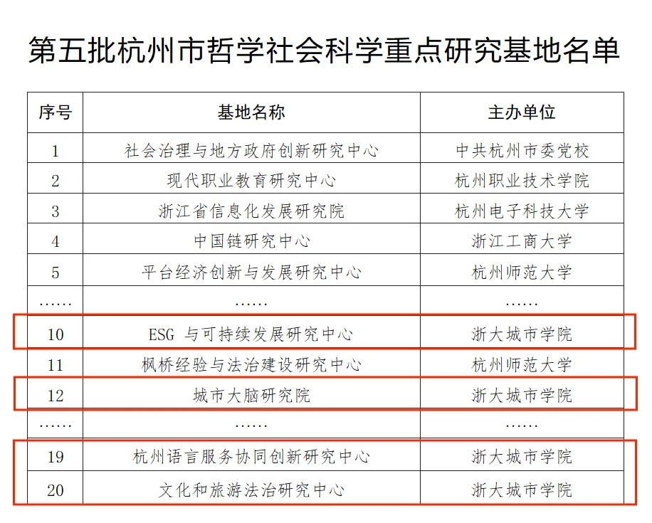 我校多所研究机构入选第五批杭州市哲学社会科学重点研究基地名单2024.05.29 -