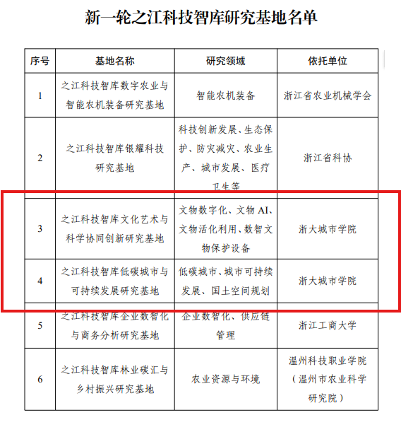 我校文化艺术与科学协同创新研究基地、低碳城市与可持续发展研究基地成功入选新一轮之江科技智库研究基地