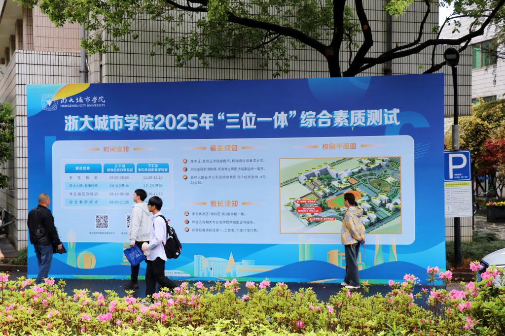 2025.04.14我校2025年“三位一体”综合素质测试举行4月12日,我校2025年“三位一体”综合素质测试举行,千余名考生走进城院与春共候一场梦想绽放。今年我校“三位一体”计划招生200人,经审查共有1228名考生获得综合测试资格,本次招考包括会展经济与管理(中外合作办学)、工业设计(中外合作办学、)英语、护理学、药学、土木工程6个专业。现场众多考生父母目送学子一一入场,将期盼化作无声的力量。“您好,欢迎报考城院”“同学,请往这边走”,志愿者们的身影穿梭不息,耐心指引...查看更多